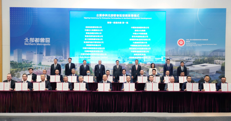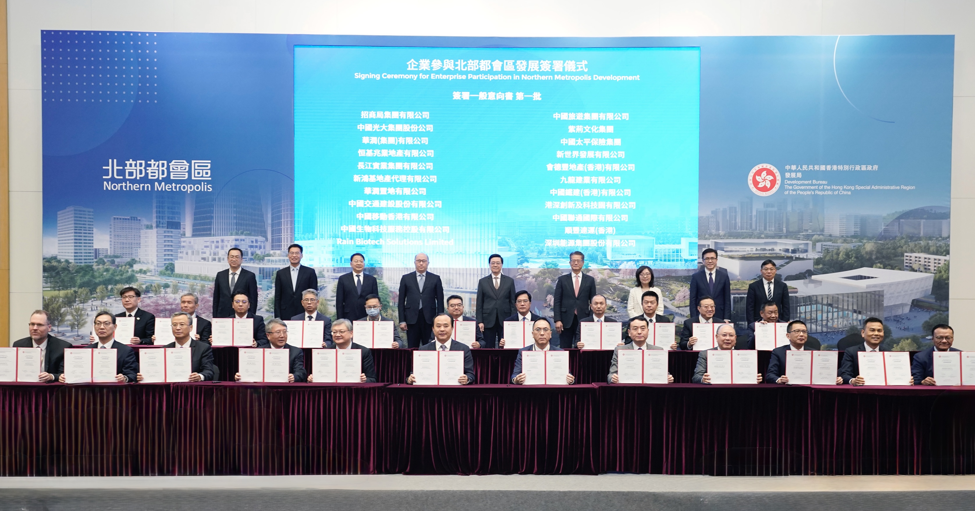当天上午,近40家企业代表实地考察北部都会区,了解整体规划和现场建设情况,切身感受北部都会区蕴藏的巨大发展机遇。下午,85家企业与特区政府签署《支持及参与北部都会区发展意向书》。35家企业签署参与北部都会区开发项目协议32份,金额超千亿港元,涉及基础设施建设、住房和民生服务、创新科技、银企合作等领域,形成齐心协力支持特区政府拼经济、谋发展的生动局面。