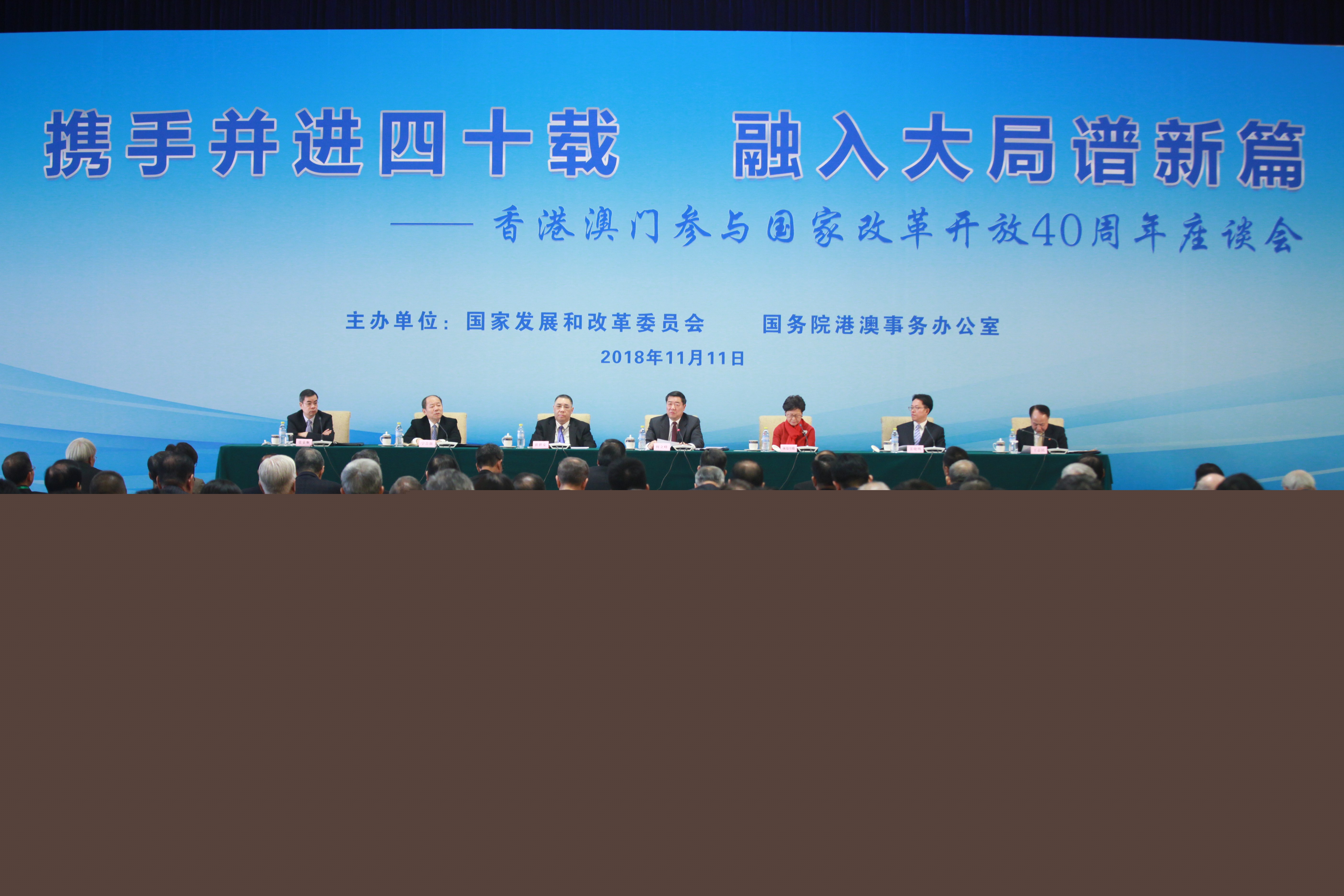 由國家發展改革委、國務院港澳辦共同主辦的“攜手并進四十載 融入大局譜新篇——香港澳門參與國家改革開放40周年座談會”11日在京舉行。