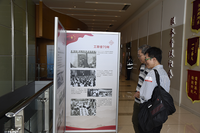 來賓觀看工聯(lián)會(huì)70周年展。(圖片來源:中央政府駐港聯(lián)絡(luò)辦)