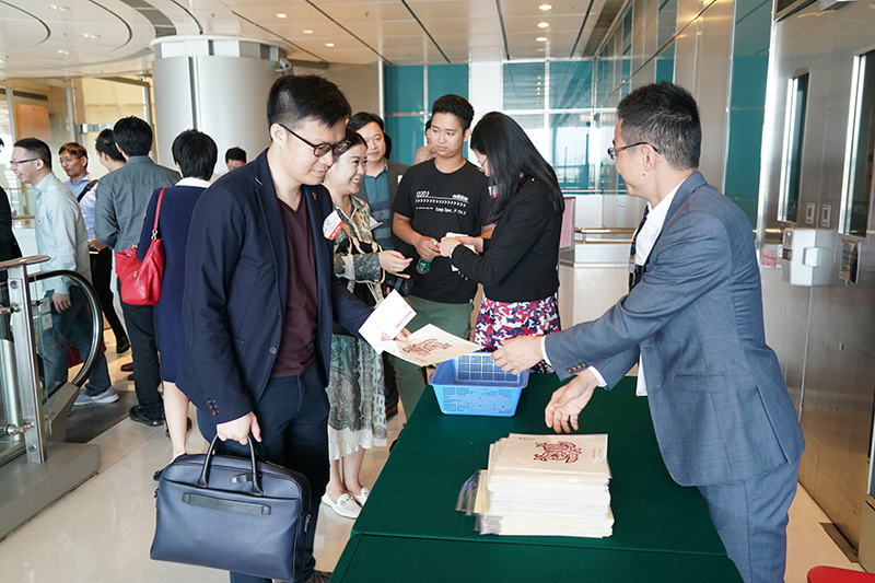 來賓領(lǐng)取紀(jì)念品。(圖片來源:中央政府駐港聯(lián)絡(luò)辦)