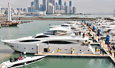 深圳將擴大游艇自由行試點范圍。圖為在深圳灣游艇會舉行的粵港澳游艇自由行首航儀式現場。