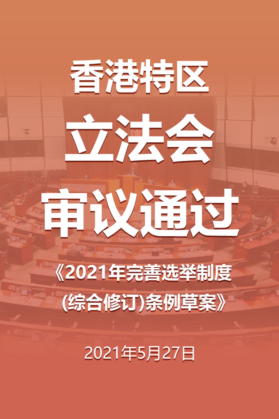 高票通過!5月27日,香港特區立法會三讀通過《2021年完善選舉制度(綜合修訂)條例草案》(下稱“條例草案”),相關條例將于5月31日刊憲生效。這標志著完善香港特別行政區選舉制度的本地立法工作全面完成,是依法治港、撥亂反正的又一重大制度成果。