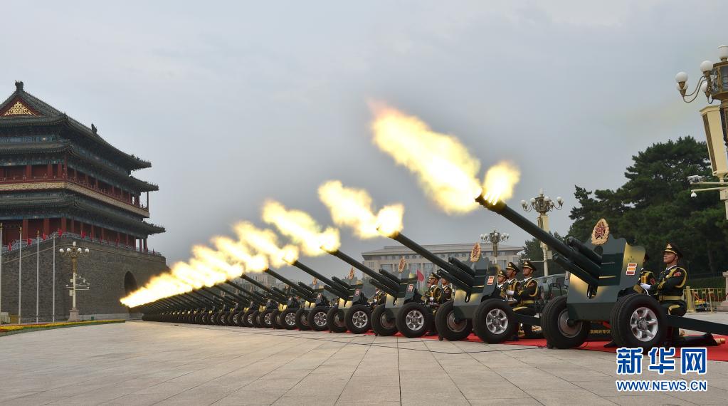 7月1日上午,慶祝中國共產黨成立100周年大會在北京天安門廣場隆重舉行。這是禮炮鳴響。(新華社記者 孟濤 攝)