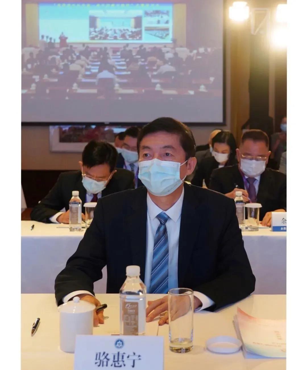 香港中聯辦主任、特區國安委國家安全事務顧問駱惠寧出席香港分會場研討會。