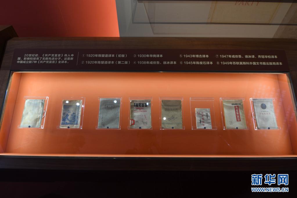 這是6月26日在北大紅樓拍攝的新中國成立以前《共產(chǎn)黨宣言》的7個中文譯本。(新華社記者 謝晗 攝)