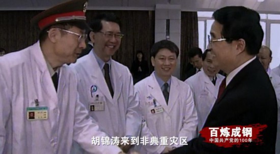 4月上旬,胡錦濤來到非典重災區廣東考察災情,研究對策。在黨中央、國務院堅強領導下,舉國上下緊急動員,堅持群防群控,攜手共克時艱,有效控制了非典疫情。6月,世界衛生組織宣布解除對北京的旅行警告,我國抗擊非典取得階段性重大勝利。