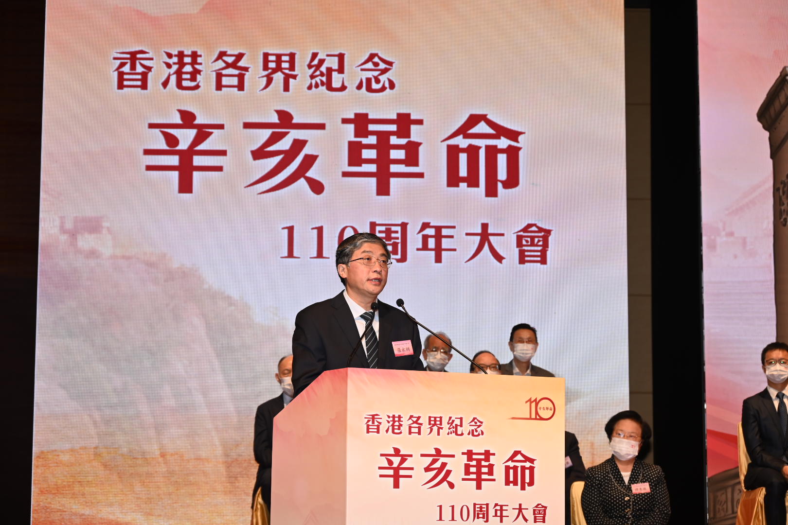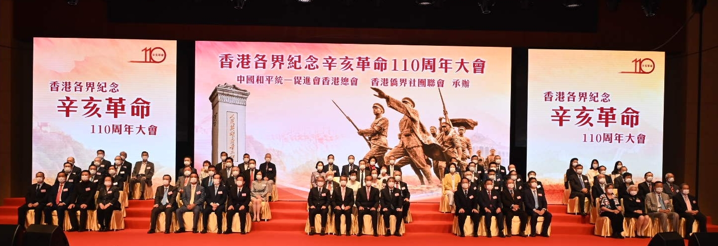 9月23日,香港各界紀念辛亥革命110周年大會在香港會展中心舉行。全國政協副主席梁振英、香港特區署理行政長官陳茂波、中央政府駐港聯絡辦副主任羅永綱等出席并致辭。中共中央臺辦、國務院臺辦主任劉結一以視頻方式致辭。中央政府駐港聯絡辦秘書長王松苗、中央駐港國安公署副署長孫青野、外交部駐港特派員公署副特派員潘云東出席。