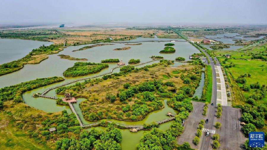 這是5月13日拍攝的山東黃河三角洲國家級自然保護區景色(無人機照片)。(新華社記者 郭緒雷 攝)