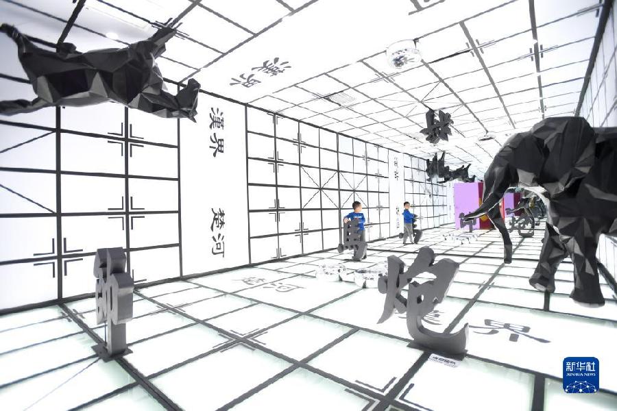 2019年9月21日,小朋友在湖南省長沙市“字在其中”漢字國潮藝術展上參觀。(新華社記者 陳澤國 攝)