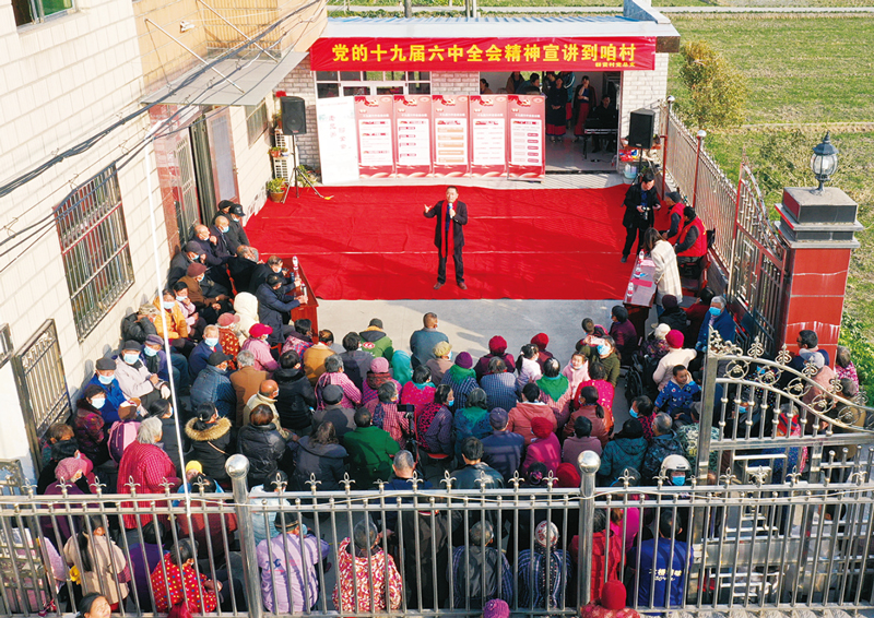 2021年12月5日,江蘇省海安市曲塘鎮群賢村開展“黨的十九屆六中全會精神宣講到咱村”活動,通過百姓名嘴宣講、文藝表演、詩朗誦等形式,向群眾宣傳全會精神。(人民視覺 姜明 攝)