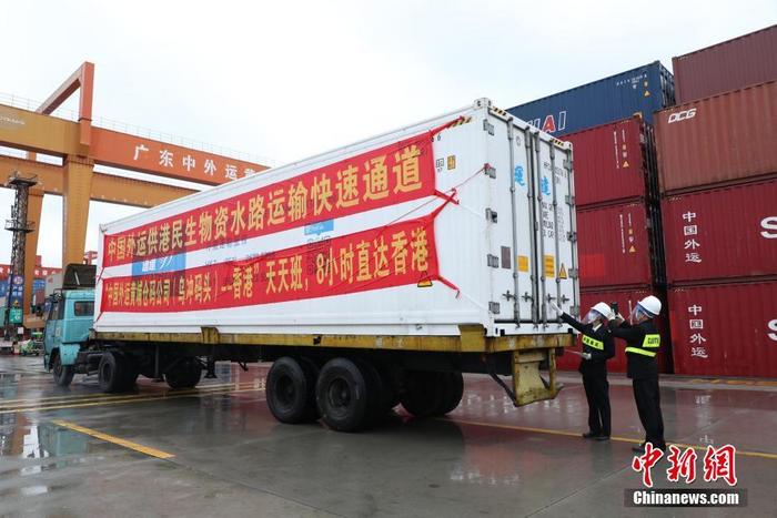 2月21日,在黃埔海關所屬老港海關的監管下,一批裝載著速凍食品等民生物資的集裝箱在中國外運黃埔倉碼公司吊裝上船發往香港,標志著中國外運“黃埔—香港”供港民生物資水路運輸快速通道正式開通。