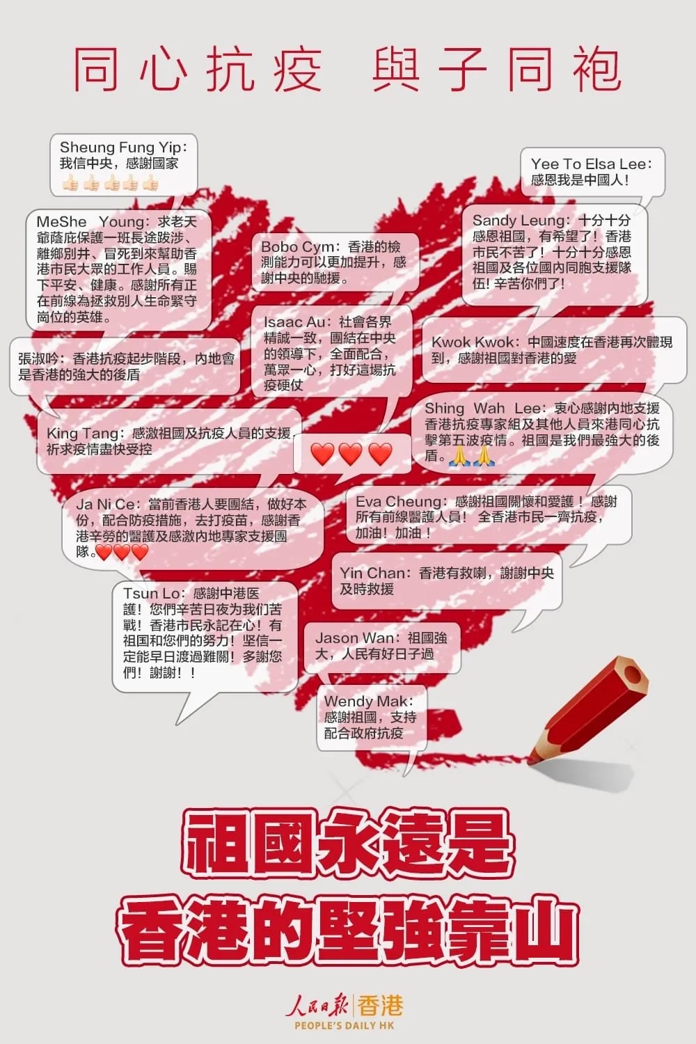 “最冷的天,來了最暖的人!”“感動到要哭了,您們就是我們的定海神針!”中央援港抗疫舉措陸續推出,港人的“朋友圈”沸騰了。大家刷屏點贊,感恩中央和內地援港情誼。