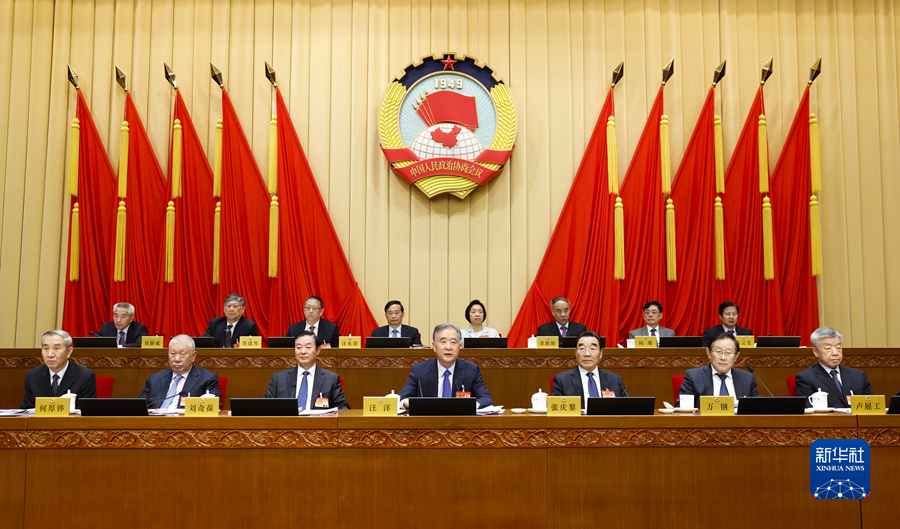 3月2日下午,政協(xié)第十三屆全國委員會常務(wù)委員會第二十次會議在北京閉幕。中共中央政治局常委、全國政協(xié)主席汪洋主持閉幕會并講話。(新華社記者 黃敬文 攝)