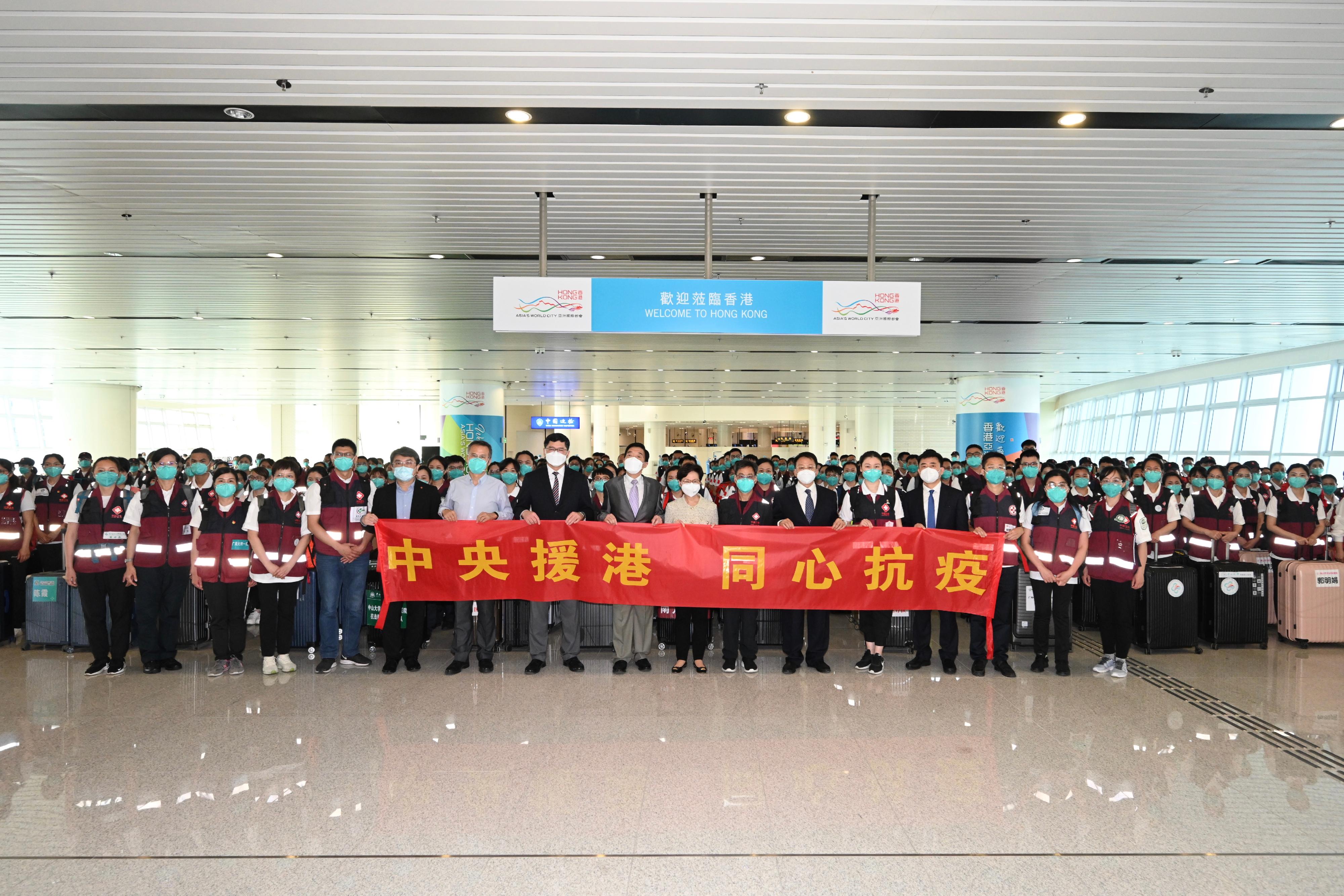 中央按特區政府請求,安排內地醫療隊來港支援治療新冠病人。醫療隊由不同專業的內地醫護人員組成,他們加入醫管局團隊后,可令亞博館社區治療設施照顧更大量病征輕微至中等的長者和其他病人。