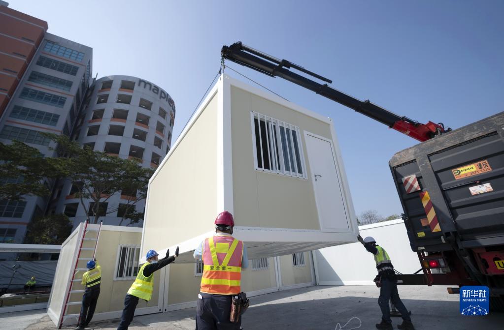 2月26日,工作人員在青衣社區(qū)隔離設(shè)施項(xiàng)目建設(shè)現(xiàn)場(chǎng)施工。(新華社記者 呂小煒 攝)