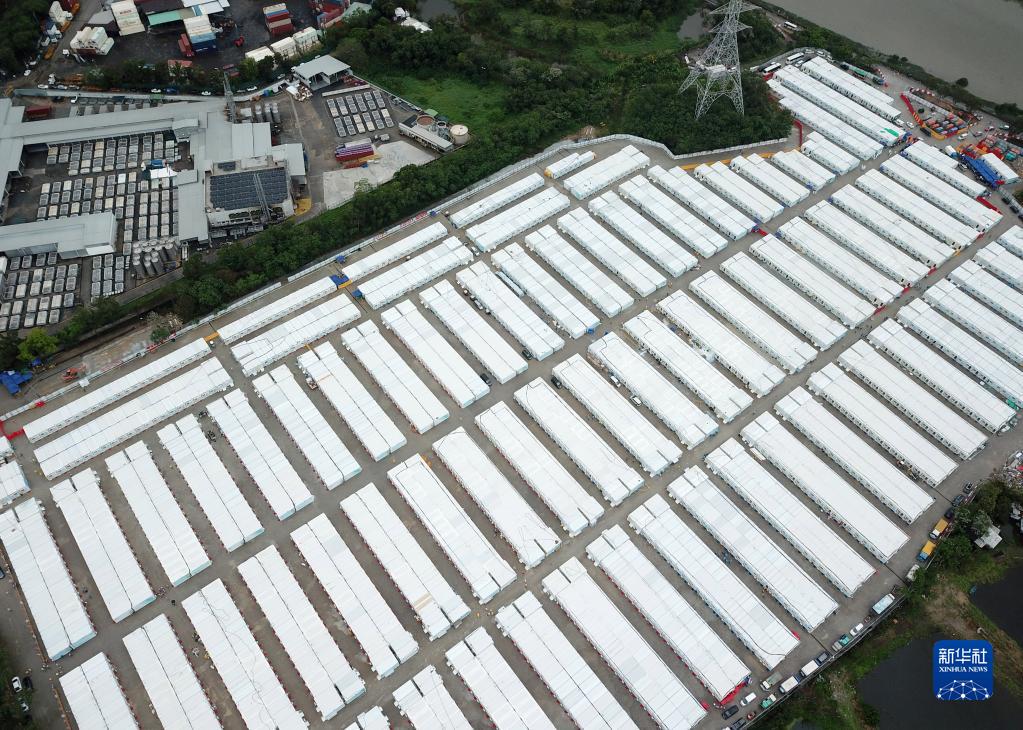 3月24日拍攝的香港元朗社區(qū)隔離設(shè)施(無人機(jī)照片)。(新華社記者 李鋼 攝)