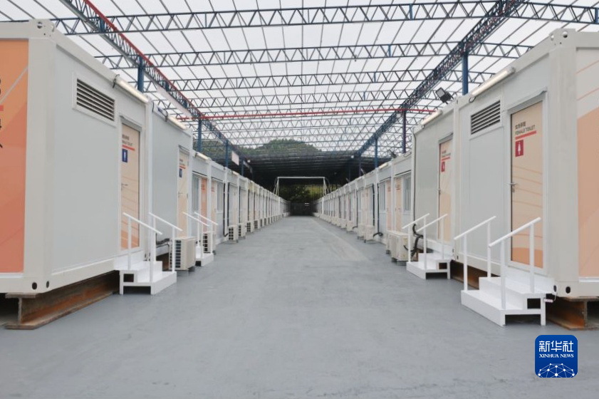 3月16日拍攝的中央援建香港洪水橋社區(qū)隔離設(shè)施。(新華社記者 吳曉初 攝)