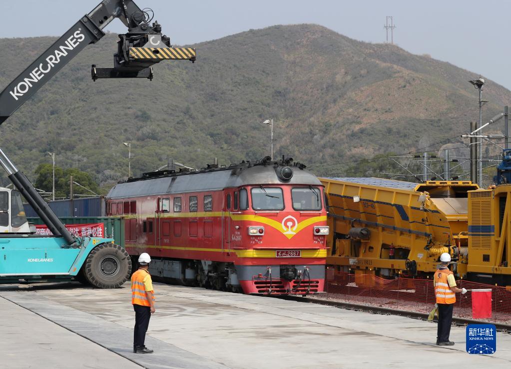 3月2日,“中央援港 同心抗疫”鐵路援港班列抵達(dá)香港。(新華社記者 李鋼 攝)