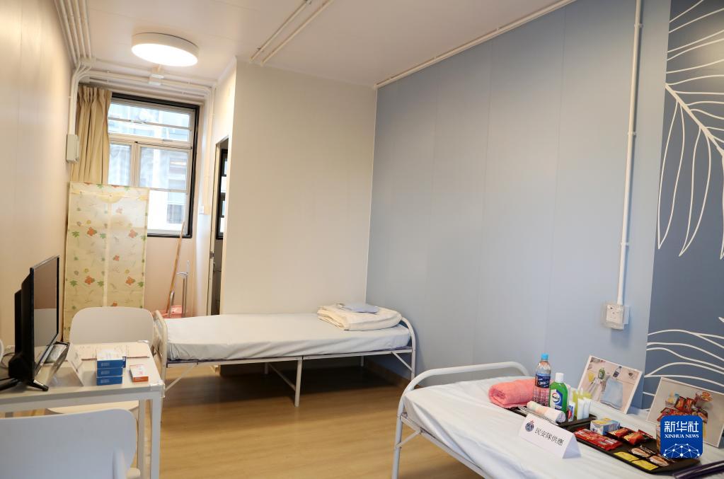 中央援建香港的竹篙灣社區隔離治療設施中的一個房間(4月19日攝)。(新華社記者 李鋼 攝)