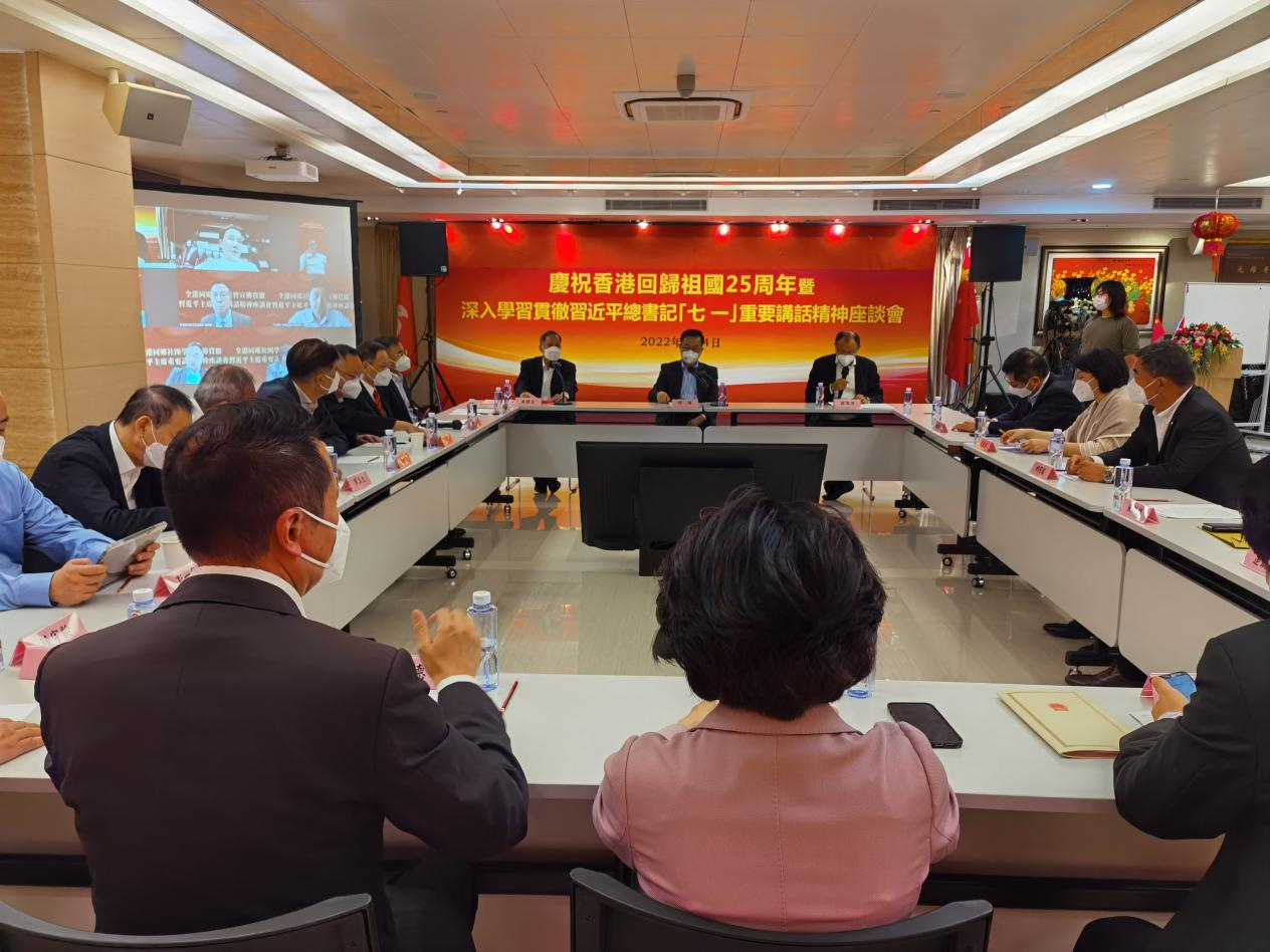 本網訊 7月4日,26家省級同鄉社團以線上線下結合的方式聯合舉辦全港同鄉社團學習貫徹習近平主席重要講話精神座談會,我辦副主任何靖應邀出席并發言。各省同鄉社團主要負責人及代表參加座談會。