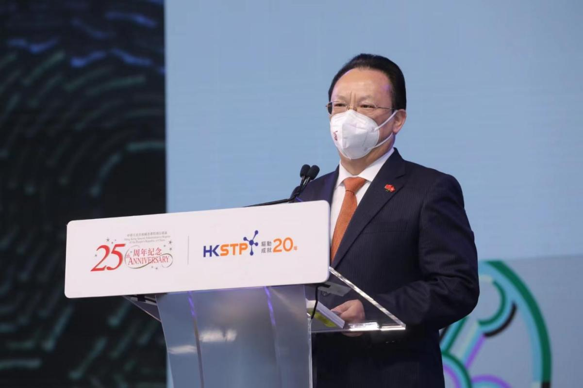 譚鐵牛副主任在香港科技園公司20周年慶祝活動(dòng)上致辭。(圖片來(lái)源:中央政府駐港聯(lián)絡(luò)辦)