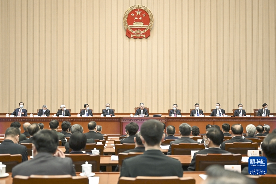3月11日上午,十四屆全國人大一次會議主席團在北京人民大會堂舉行第七次會議。主席團常務主席趙樂際主持會議。新華社記者 燕雁 攝