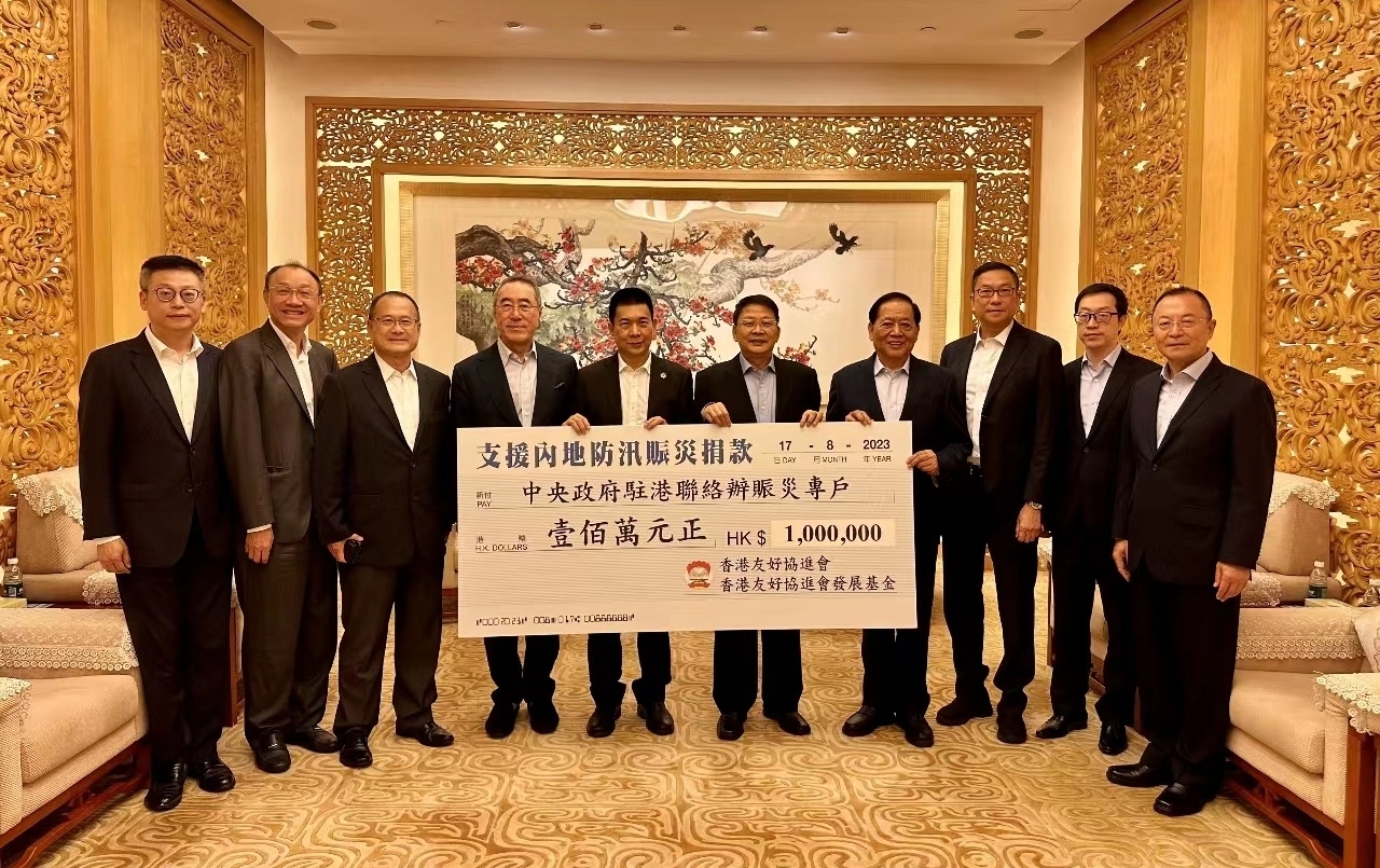 香港友好協進會捐款100萬港元。(圖片來源:中央政府駐港聯絡辦)
