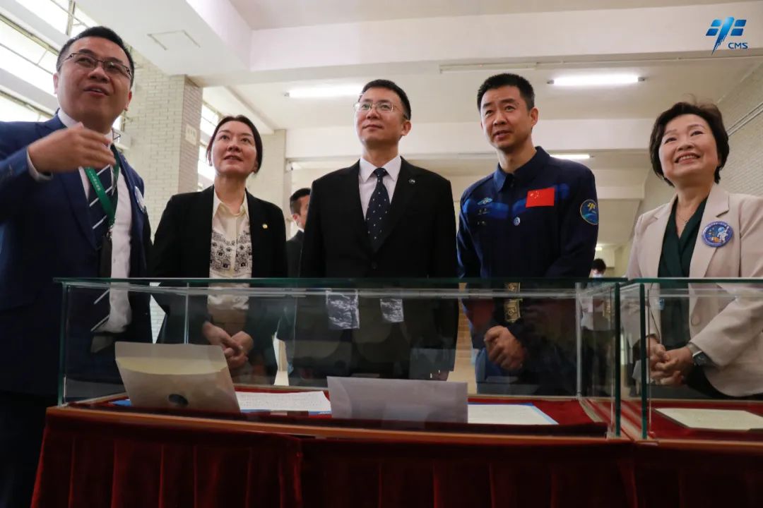 航天員們的到來,拉近了中國空間站與香港學生們的距離。授課結束后,學生代表將他們親手制作的航天主題作品送給代表團,航天員們也將他們“太空出差”期間拍攝的地球美景簽名照贈予現場學生。香港培僑中學陳蔓琳實現了與“太空筆友”——神舟十四號乘組指令長陳冬線下見面的愿望。航天員張陸還將勉勵學生奮發努力的書法作品贈送給學校。