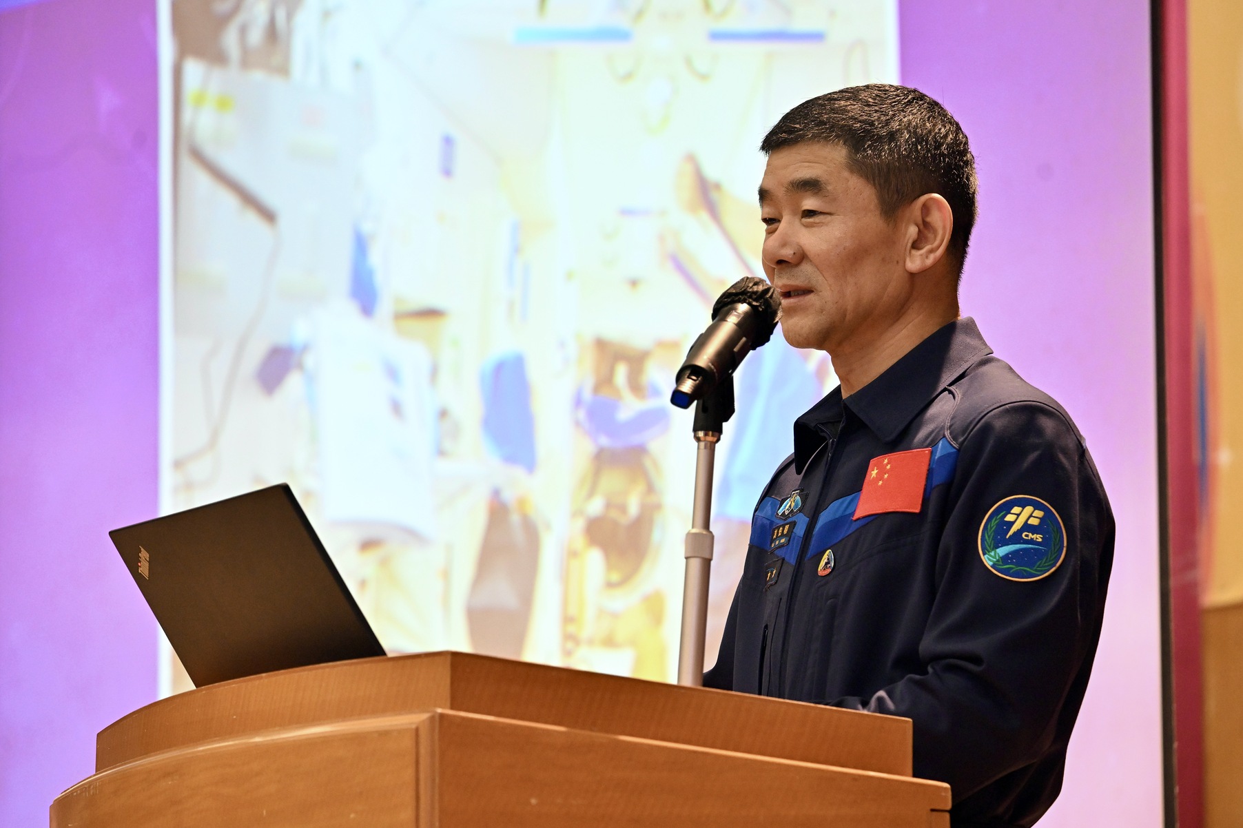 中國載人航天工程代表團11月29日繼續在港訪問,圖示神舟十二號乘組航天員劉伯明出席在馬頭涌官立小學(紅磡灣)舉行的“中國載人航天工程代表團與中小學生真情對話”活動。