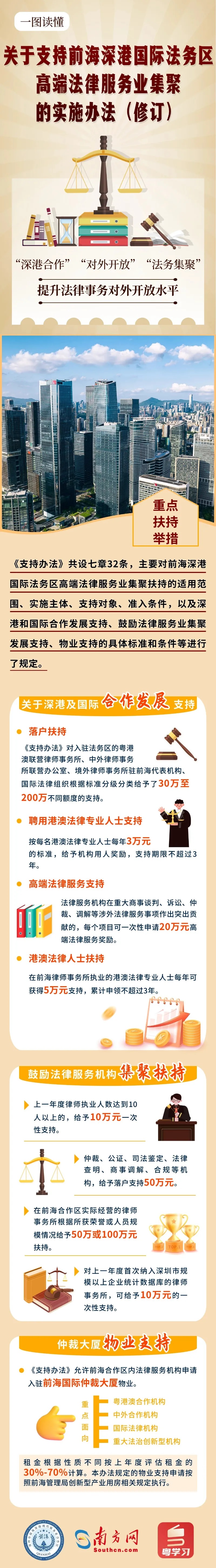 近日,深圳市前海管理局印發《深圳市前海深港現代服務業合作區管理局關于支持前海深港國際法務區高端法律服務業集聚的實施辦法(修訂)》(以下簡稱《辦法》),自今年6月1日起實施,有效期3年。