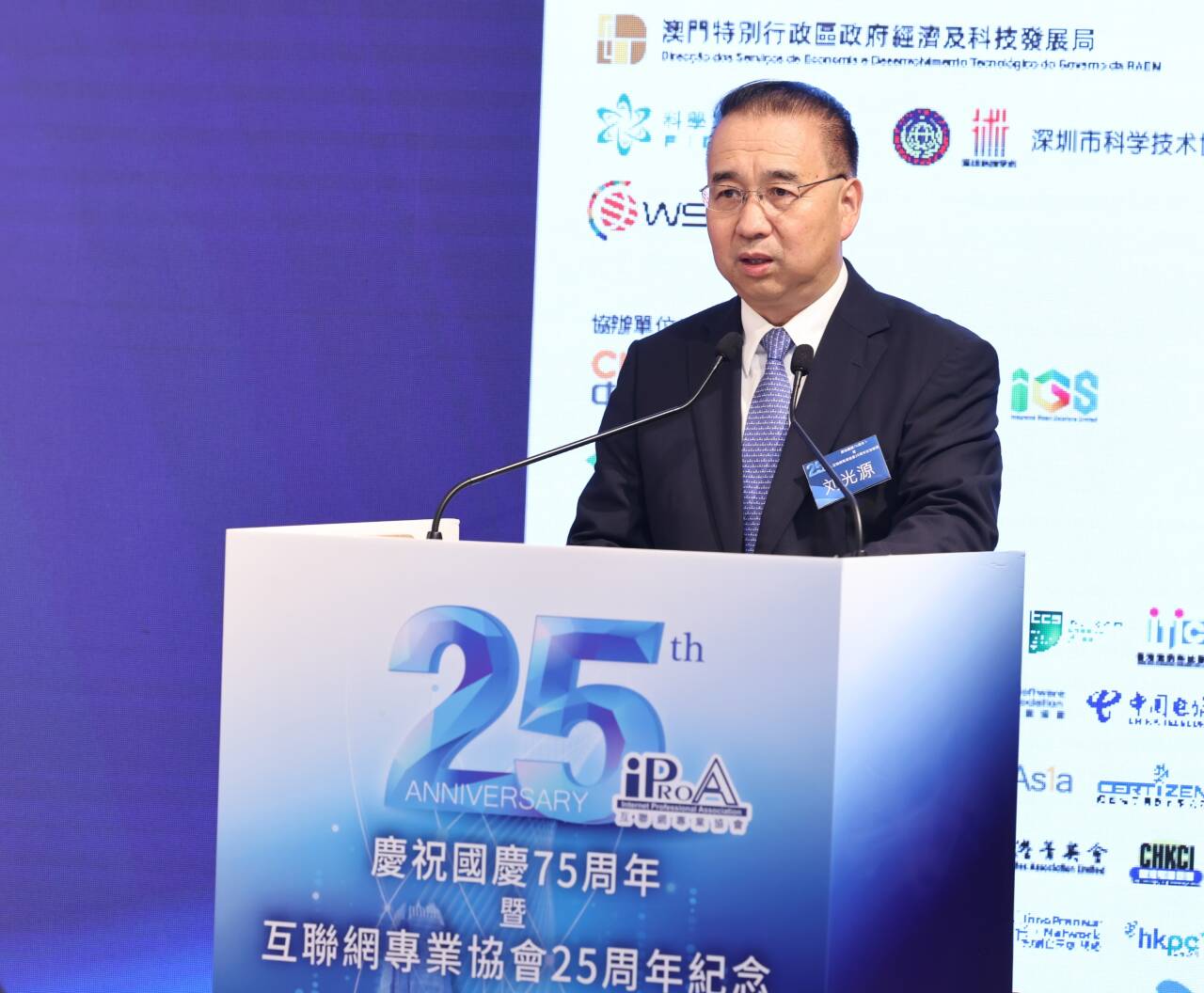 本網訊 9月13日,慶祝中華人民共和國成立75周年暨互聯網專業協會25周年晚宴在港舉辦。中央政府駐港聯絡辦副主任劉光源、香港特區政府創新科技及工業局局長孫東應邀主禮并致辭。香港科創界人士及社會各界嘉賓約300人出席。