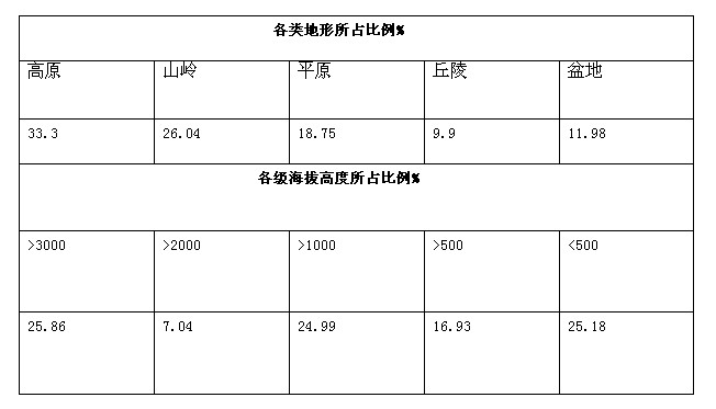 ??? 在中國遼闊的大地上,有雄偉的高原、起伏的山嶺、廣闊的平原、低緩的丘陵,還有四周群山環(huán)抱、中間低平的大小盆地。陸地上的5種基本地形類型,中國均有分布,這為中國工農(nóng)業(yè)的發(fā)展提供了多種多樣的條件。